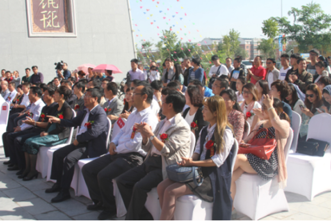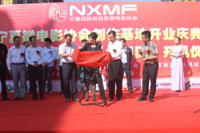 (寧夏自治區(qū)銀川市人民政府副市長李鴻儒,銀川市委常委、宣傳部部長王瑋等領(lǐng)導(dǎo)一起為基地揭開紅布)