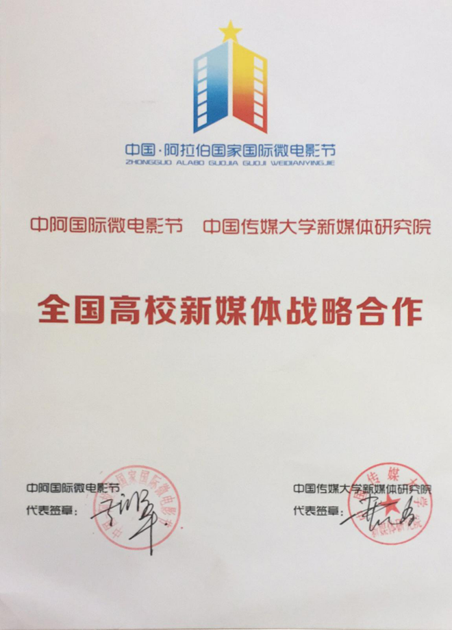2016年8月承辦了由銀川市政府、銀川經(jīng)濟(jì)技術(shù)開發(fā)區(qū)主辦的2016中國阿拉伯國家國際微電影節(jié)。會議期間我司與金紫荊國際新媒體電影節(jié)簽訂《友好戰(zhàn)略合作》;與中國網(wǎng)微電影頻道簽訂《新媒體平臺合作》;與中國傳媒大學(xué)新媒體研究院簽訂《全國高校新媒體戰(zhàn)略合作》。