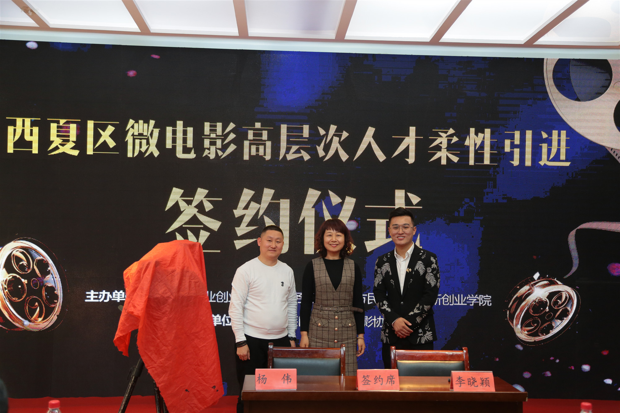 同時(shí)頒獎(jiǎng)典禮之后,為推動(dòng)西夏區(qū)構(gòu)筑人才引領(lǐng)發(fā)展高地,加快西夏區(qū)微電影人才隊(duì)伍建設(shè),打造西夏區(qū)微電影“人才小高地”,借勢此次盛典,西夏區(qū)微電影高層次人才柔性引進(jìn)簽約儀式召開。簽約儀式上,西夏區(qū)政法委副書記、秘書長兼西夏區(qū)就創(chuàng)局局長李曉穎同微電影高層次人才魏亞平、楊偉等,本著雙方“互利共贏、循序漸進(jìn)、重點(diǎn)推進(jìn)、共謀發(fā)展”的原則,簽訂“西夏區(qū)微電影高層次人才柔性引進(jìn)” 協(xié)議,為西夏區(qū)微電影“人才小高地”建設(shè)注入新鮮血液。
